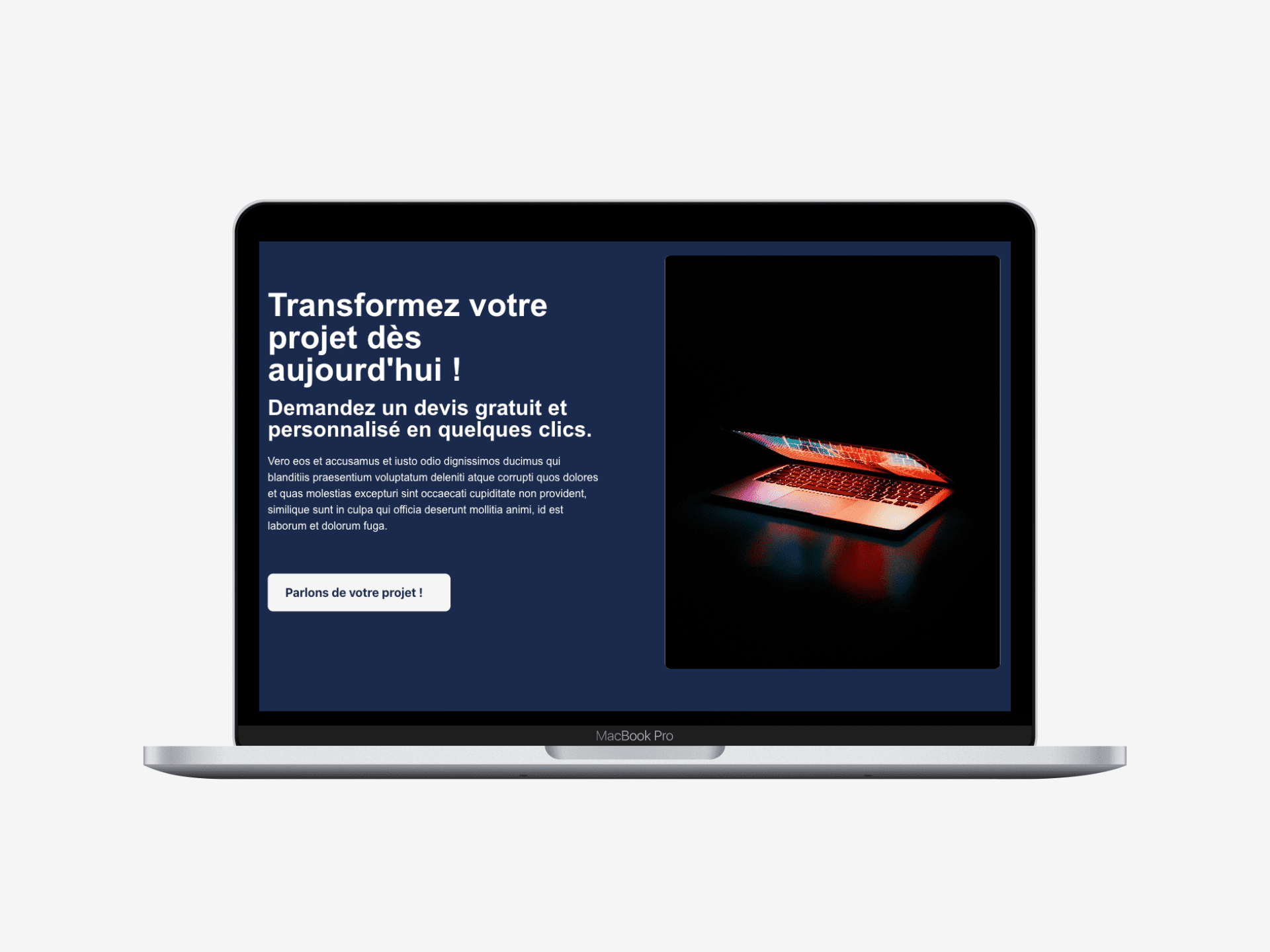 Nos sections Hero sont conçues pour mettre en valeur votre message principal dès l’arrivée sur votre site. Avec des visuels adaptés et des textes soignés, elles offrent une présentation claire et accueillante, tout en s’intégrant facilement à votre identité visuelle.